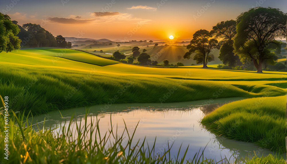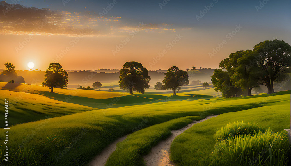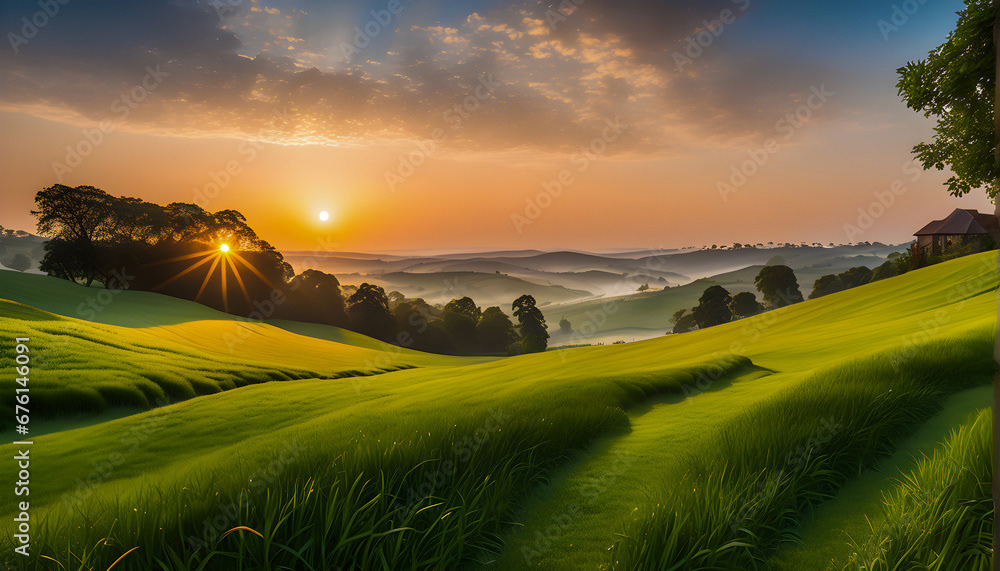 Sunrise Sunset grass land